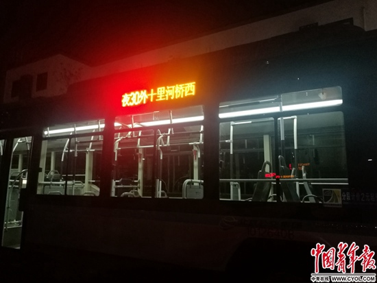 凌晨4:50分,夜30路的末班車開出場站,車廂里成為晨練老人的天下。