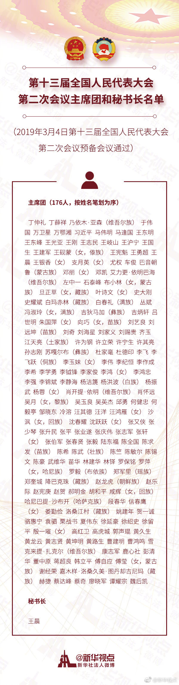 第十三屆全國人民代表大會(huì)第二次會(huì)議主席團(tuán)和秘書長名單