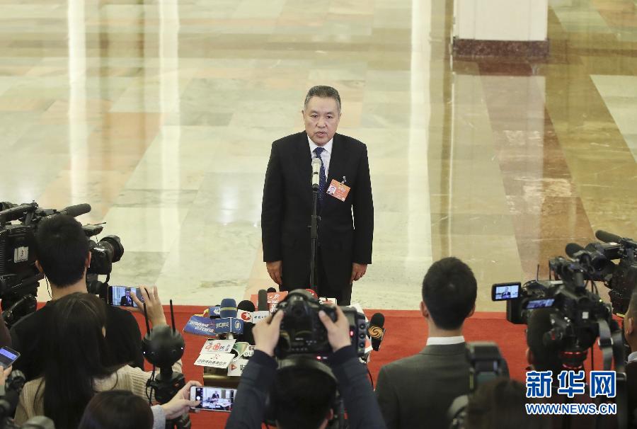 3月5日,第十三屆全國(guó)人民代表大會(huì)第二次會(huì)議在北京人民大會(huì)堂開(kāi)幕。這是國(guó)家市場(chǎng)監(jiān)督管理總局局長(zhǎng)張茅在“部長(zhǎng)通道”接受采訪。 新華社記者 殷剛 攝