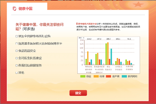 美好生活離不開(kāi)健康,沒(méi)有全民健康,就沒(méi)有全面小康。在今年的兩會(huì)熱點(diǎn)調(diào)查中,健康中國(guó)引發(fā)網(wǎng)民普遍關(guān)注,排名靠前。