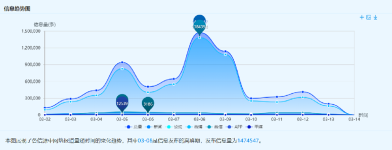 新華睿思大數(shù)據(jù)通過(guò)監(jiān)測(cè)新聞網(wǎng)站、論壇、微信、微博、APP、平媒6個(gè)信源,分析結(jié)果顯示,截至目前,全國(guó)兩會(huì)開(kāi)幕以來(lái),關(guān)于健康中國(guó)的話(huà)題共6788791個(gè)。