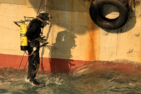 潛水員準(zhǔn)備下水