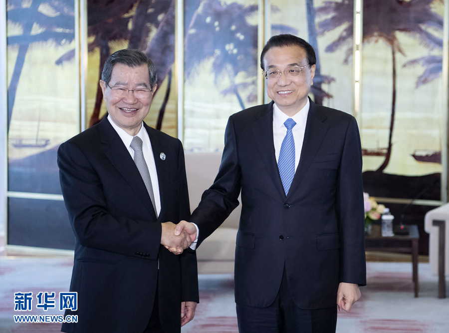 3月27日,國(guó)務(wù)院總理李克強(qiáng)在海南博鰲會(huì)見臺(tái)灣兩岸共同市場(chǎng)基金會(huì)榮譽(yù)董事長(zhǎng)蕭萬長(zhǎng)一行。 新華社記者 李濤 攝