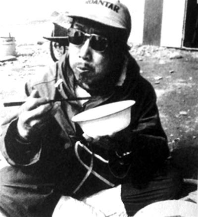 長(zhǎng)城站建設(shè)時(shí)環(huán)境十分艱難,郭琨席地而坐就餐。