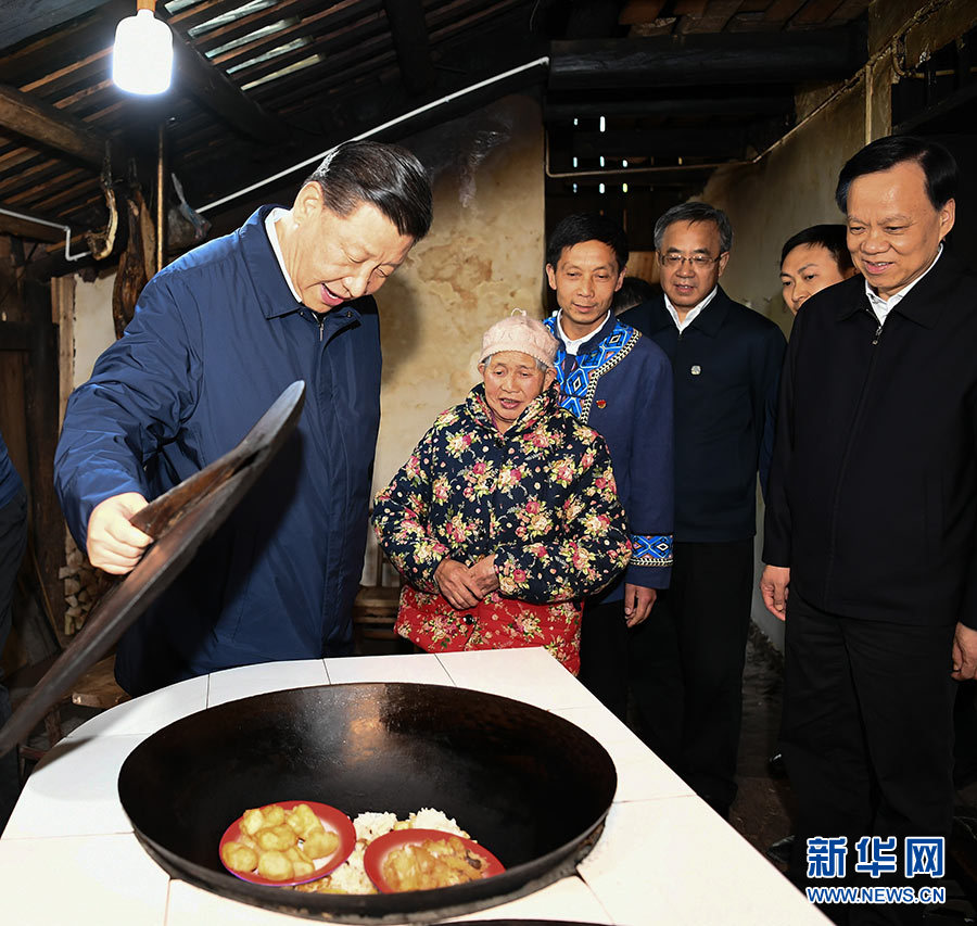 走訪一家脫貧戶,他沿著鄉(xiāng)間小路步行察看自然環(huán)境、村容村貌,了解該村通過種植中藥材黃精等特色經(jīng)濟作物帶動村民脫貧的情況。