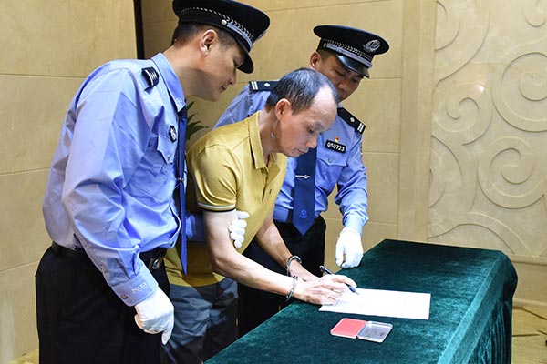 公安機關(guān)向“紅通人員”梁澤寧宣布逮捕決定(深圳市紀委監(jiān)委 倪勛 攝)