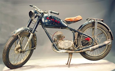 王進(jìn)喜“跑井”檢查工作時騎過的摩托車。鐵人王進(jìn)喜紀(jì)念館供圖
