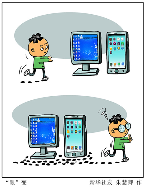 新華社北京5月4日電(記者溫競?cè)A、王秉陽)國家衛(wèi)健委日前公布相關(guān)調(diào)查結(jié)果稱,目前我國低年齡段近視問題比較突出。同時提示,不科學使用電子產(chǎn)品是近視高發(fā)的主因之一,6歲以下兒童要盡量避免使用手機和電腦,家長在孩子面前應盡量少使用電子產(chǎn)品。