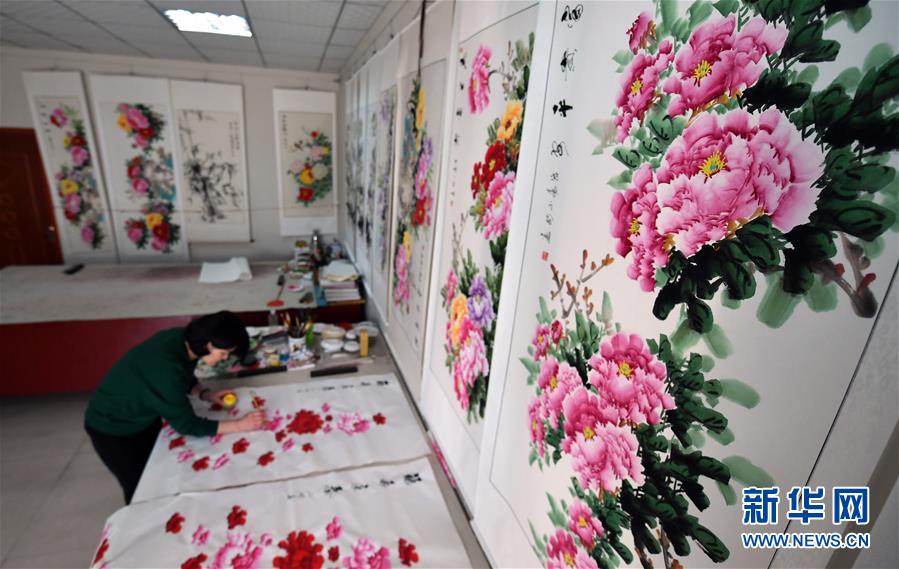 作畫近30年的郭亞修認(rèn)為鄉(xiāng)土地域和人文環(huán)境成就了平樂(lè),“平樂(lè)人愛(ài)牡丹、畫牡丹,牡丹寓意富貴、吉祥,平樂(lè)就從牡丹里討到了名氣和財(cái)氣。” 如今,平樂(lè)社區(qū)有千余名農(nóng)民畫家以畫牡丹為生。