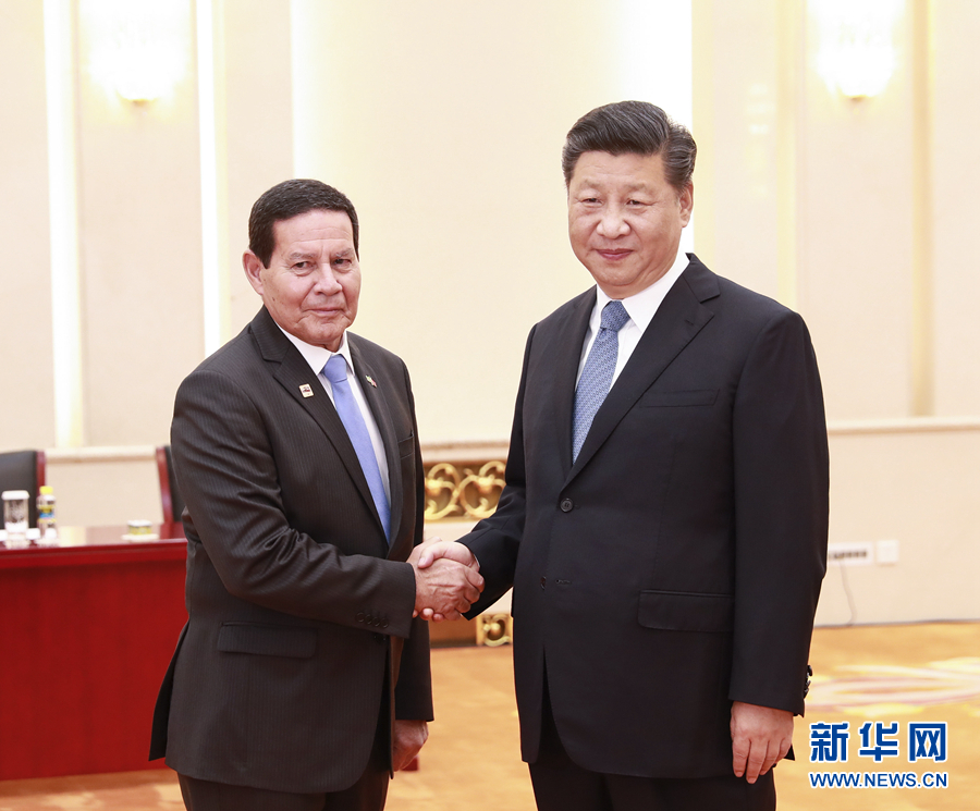 5月24日,國家主席習近平在北京人民大會堂會見巴西副總統(tǒng)莫朗。新華社記者 龐興雷 攝