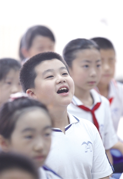 北京市育鴻中學(xué)組織中小學(xué)生收看太空授課。影像中國