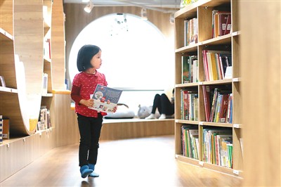 繪本圖書館里,孩子坐在家長(zhǎng)身旁,捧著手中的書讀得津津有味。場(chǎng)館設(shè)計(jì)之初,王慧瑾親自“操刀”,定下了原木簡(jiǎn)約風(fēng)格的主基調(diào),就是為了滿足家長(zhǎng)的高品質(zhì)審美需求,力圖打造一個(gè)家長(zhǎng)和孩子都可以樂(lè)在其中的悠閑天地。