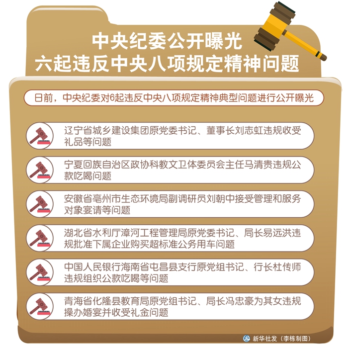 新華社北京6月3日電 日前,中央紀(jì)委對6起違反中央八項(xiàng)規(guī)定精神典型問題進(jìn)行公開曝光。這6起典型問題是: