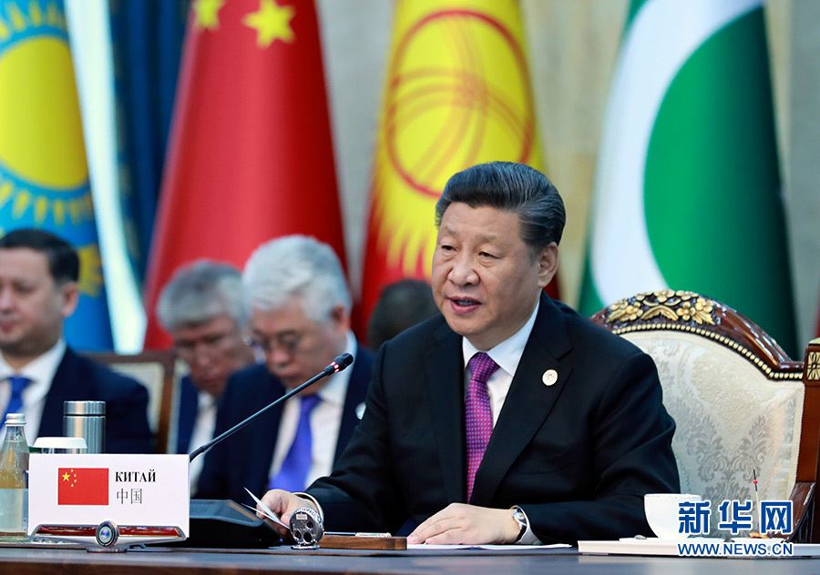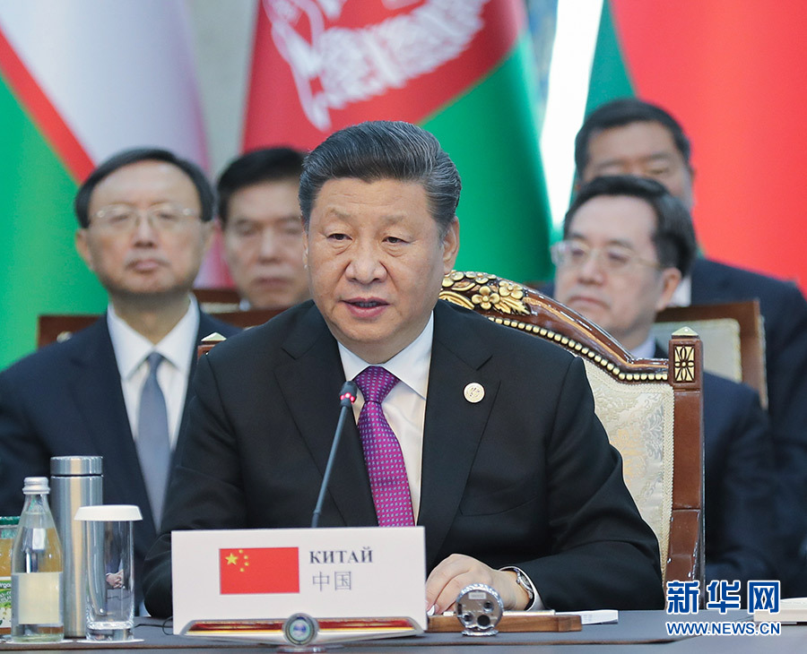 習近平在會上發(fā)表題為《凝心聚力 務(wù)實篤行 共創(chuàng)上海合作組織美好明天》的重要講話。