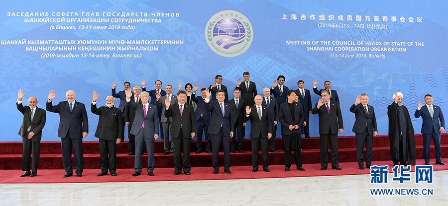 6月14日,上海合作組織成員國元首理事會第十九次會議在吉爾吉斯斯坦首都比什凱克舉行。國家主席習近平同印度總理莫迪、哈薩克斯坦總統(tǒng)托卡耶夫、吉爾吉斯斯坦總統(tǒng)熱恩別科夫、巴基斯坦總理伊姆蘭·汗、俄羅斯總統(tǒng)普京、塔吉克斯坦總統(tǒng)拉赫蒙、烏茲別克斯坦總統(tǒng)米爾濟約耶夫出席會議。習近平在會上發(fā)表重要講話。這是小范圍會談前,上海合作組織成員國元首集體合影。 新華社記者 謝環(huán)馳 攝