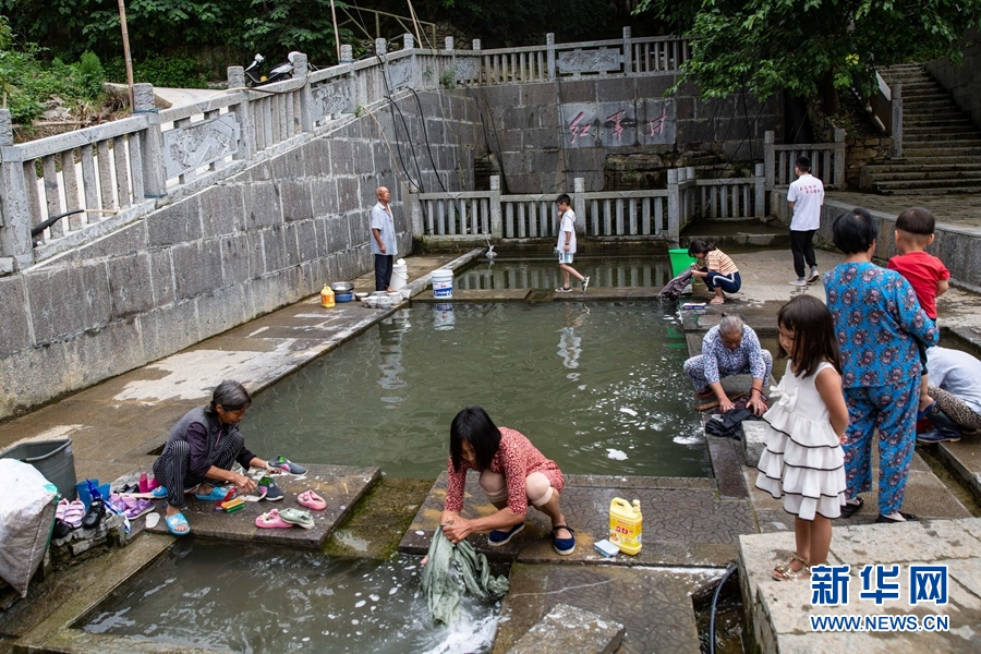 在紅軍井洗衣的當(dāng)?shù)匕傩铡P氯A社記者 吳壯 攝