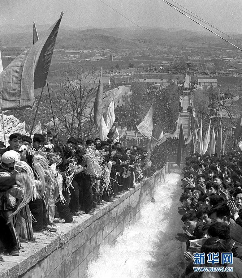 這是河南省林縣(今林州市)人民舉行盛大集會(huì),慶祝紅旗渠竣工通水(資料照片)。1969年7月8日,河南省林縣紅旗渠工程全部建成。新華社發(fā)