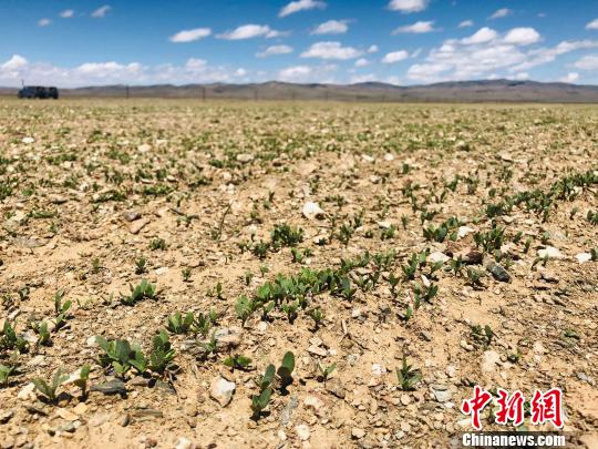 從曲麻萊縣城一路顛簸、跋山涉水6個小時,曲麻萊縣麻多鄉(xiāng)黨委書記洛周江措帶著記者來到了已經(jīng)種植兩年的10萬畝中藥種植基地。這里,曾經(jīng)是10萬畝已經(jīng)嚴(yán)重沙化的草場。因?yàn)橥恋厣郴瘒?yán)重,全鄉(xiāng)接近70%的牧戶都外遷到了格爾木和稱多縣的清水河鄉(xiāng)等地。