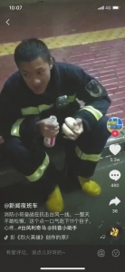 這個(gè)消防員來自涼山,他說,怕家人看到后會(huì)擔(dān)心