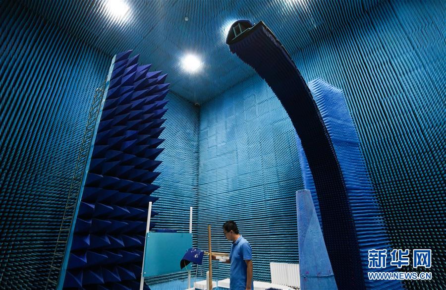 在江蘇南京江寧經(jīng)濟(jì)技術(shù)開發(fā)區(qū),科研人員在網(wǎng)絡(luò)通信與安全紫金山實(shí)驗(yàn)室的微波暗室內(nèi)工作(6月6日攝)。新華社記者 李響 攝