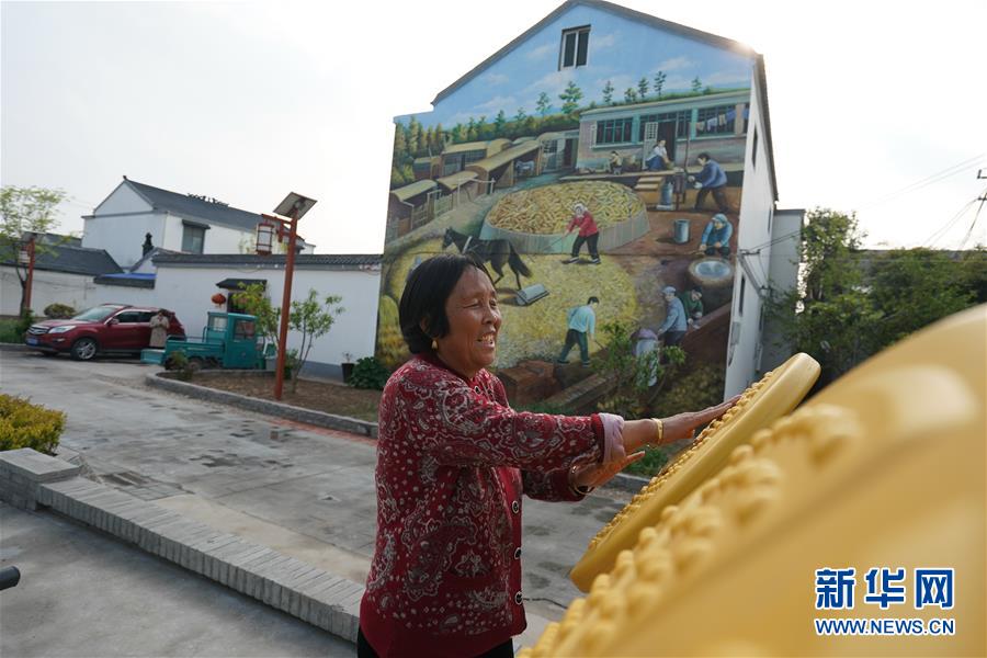 在宿遷市耿車鎮(zhèn)大眾村,村民劉翠珍在家旁的村民廣場健身(4月16日攝)。新華社記者 季春鵬 攝