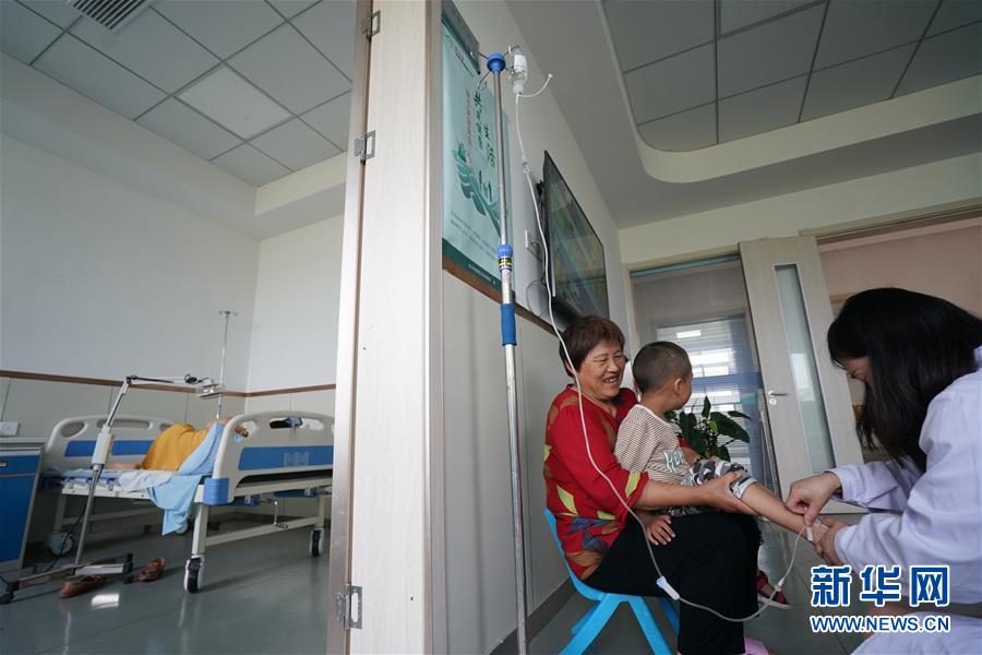 在宿遷市宿豫區(qū)新莊鎮(zhèn)杉荷園社區(qū)衛(wèi)生室,患者在接受治療(7月16日攝)。新華社記者 季春鵬 攝