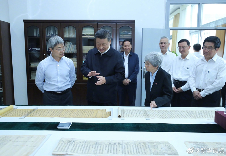 習(xí)近平總書(shū)記19日下午來(lái)到敦煌研究院,察看珍藏文物和學(xué)術(shù)成果展示,并同有關(guān)專(zhuān)家、學(xué)者和文化單位代表座談。(文字:張曉松、朱基釵 攝影:鞠鵬、謝環(huán)馳)
