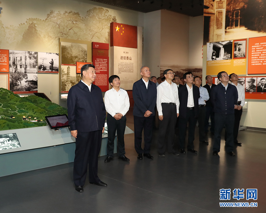 9月12日,中共中央總書記、國家主席、中央軍委主席習近平視察中共中央北京香山革命紀念地。這是習近平在香山革命紀念館參觀《為新中國奠基》主題展覽。 新華社記者 黃敬文 攝