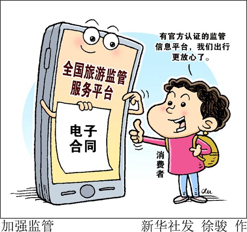“我剛給全家人從旅行社訂了跟團(tuán)游,就收到了提醒簽約旅游電子合同的短信。有官方認(rèn)證的監(jiān)管信息平臺(tái),我們出行更放心了。”上海市民方赟梅說,家人和朋友對納入“全國旅游監(jiān)管服務(wù)平臺(tái)”的電子合同頻頻點(diǎn)贊。