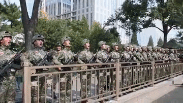 這是繼今年10月1日國(guó)慶盛典時(shí)“兵哥哥”們向女排姑娘致意之后,兩大“天團(tuán)”再次互動(dòng)。