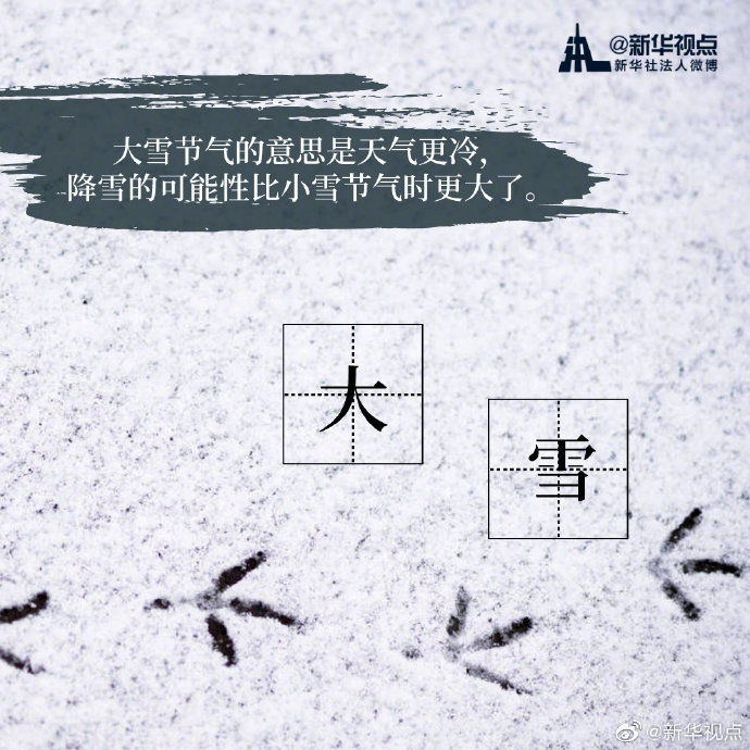 “白雪紛紛何所似?未若柳絮因風(fēng)起。”今天18時(shí)18分迎來“大雪”節(jié)氣。相較于“小雪”節(jié)氣,“大雪”節(jié)氣時(shí),氣溫不斷下降,雪量不斷增大,下雪天數(shù)不斷增加。天氣漸冷,注意添衣保暖。?