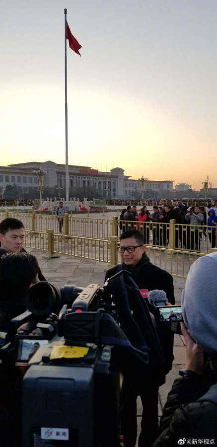 12月7日清晨,香港特區(qū)政府警務處處長鄧炳強一行來到天安門廣場觀看升旗儀式。(記者孫少龍) ????