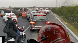 在北京,一輛消防車出警救援時(shí)被堵,兩名熱心騎手幫忙疏導(dǎo)交通。