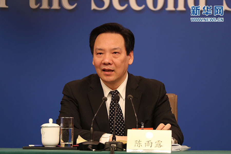 全國政協(xié)十三屆二次會議3月5日15:00在梅地亞中心多功能廳舉行記者會,邀請5位全國政協(xié)委員就“打贏防范化解重大風(fēng)險、精準(zhǔn)脫貧、污染防治三大攻堅戰(zhàn)”回答記者提問。圖為全國政協(xié)經(jīng)濟(jì)委員會副主任(經(jīng)濟(jì)界)、中國人民銀行副行長陳雨露回答記者提問。新華網(wǎng)/中國政府網(wǎng) 陳杰 攝