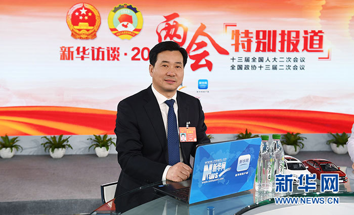 全國人大代表、江蘇科行環(huán)保股份有限公司董事長劉懷平做客新華網(wǎng)2019全國兩會特別報(bào)道。新華網(wǎng) 李相博攝。