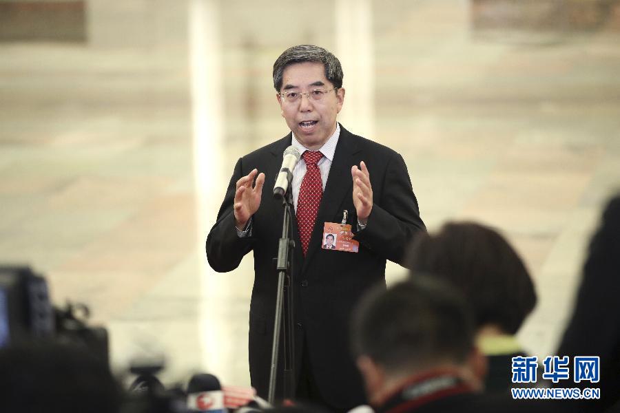 3月8日,十三屆全國(guó)人大二次會(huì)議在北京人民大會(huì)堂舉行第二次全體會(huì)議。這是國(guó)務(wù)院發(fā)展研究中心黨組書記馬建堂在“部長(zhǎng)通道”接受采訪。新華社記者 金立旺 攝