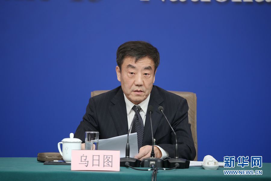 十三屆全國人大二次會議新聞中心3月9日在梅地亞中心新聞發(fā)布廳舉行記者會,邀請全國人大農(nóng)業(yè)與農(nóng)村委員會主任委員陳錫文、全國人大財(cái)政經(jīng)濟(jì)委員會副主任委員烏日圖、全國人大常委會法制工作委員會副主任劉俊臣、全國人大常委會法制工作委員會副主任許安標(biāo)、全國人大環(huán)境與資源保護(hù)委員會委員程立峰就“人大立法工作”相關(guān)問題回答記者提問。圖為全國人大財(cái)政經(jīng)濟(jì)委員會副主任委員烏日圖。新華網(wǎng)/中國政府網(wǎng) 劉廈 攝