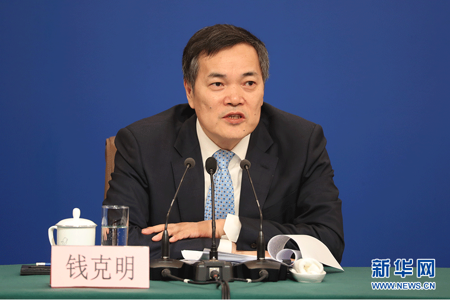 十三屆全國人大二次會(huì)議新聞中心3月9日(星期六)10時(shí)30分在梅地亞中心新聞發(fā)布廳舉行記者會(huì),邀請(qǐng)商務(wù)部部長鐘山、副部長兼國際貿(mào)易談判副代表王受文、副部長錢克明就“促進(jìn)形成強(qiáng)大國內(nèi)市場 推動(dòng)全方位對(duì)外開放”相關(guān)問題回答中外記者提問。圖為錢克明回答記者提問。新華網(wǎng)/中國政府網(wǎng) 陳杰 攝