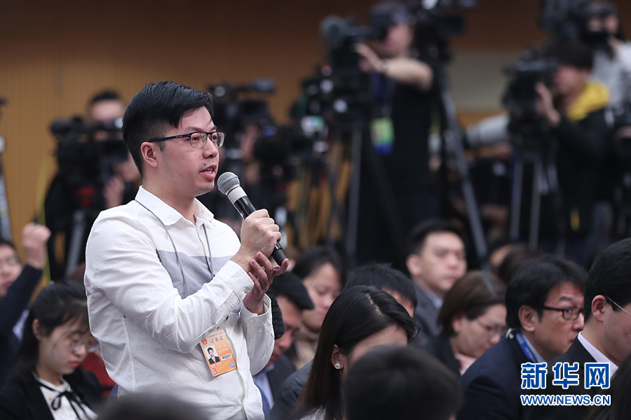 十三屆全國人大二次會議新聞中心3月11日(星期一)10時30分在梅地亞中心新聞發(fā)布廳舉行記者會,邀請國家市場監(jiān)督管理總局局長張茅、國家藥品監(jiān)督管理局局長焦紅、國家知識產(chǎn)權(quán)局局長申長雨就“加強(qiáng)市場監(jiān)管 維護(hù)市場秩序”相關(guān)問題回答中外記者提問。圖為南方都市報南方報業(yè)全媒體記者提問。新華網(wǎng)/中國政府網(wǎng) 劉廈 攝