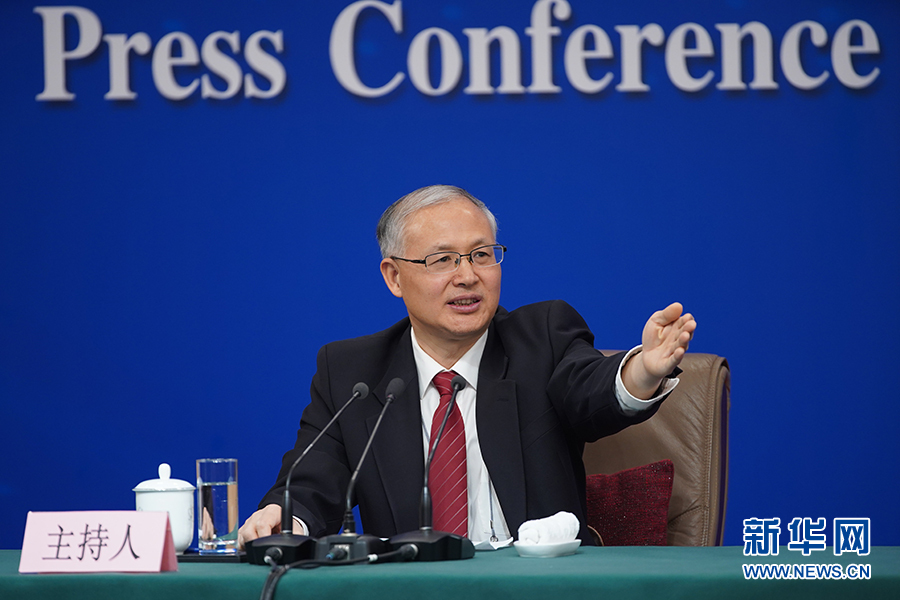 十三屆全國人大二次會議新聞中心于3月11日(星期一)15時在梅地亞中心新聞發(fā)布廳舉行記者會,邀請生態(tài)環(huán)境部部長李干杰就“打好污染防治攻堅戰(zhàn)”相關問題回答中外記者提問。圖為記者會主持人。新華網/中國政府網 劉廈 攝