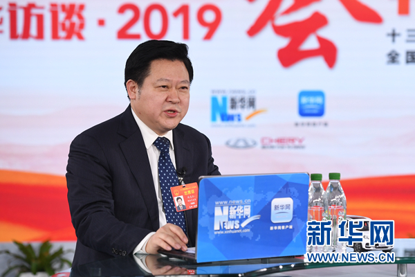 3月12日,全國人大代表、郴州市市長(zhǎng)劉志仁做客新華網(wǎng)。新華網(wǎng) 李相博 攝
