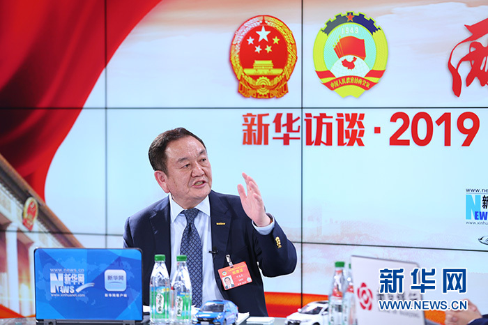 3月12日,全國政協(xié)委員、泰山體育集團(tuán)董事長卞志良做客新華網(wǎng)2019全國兩會特別報道。新華網(wǎng) 李相博 攝