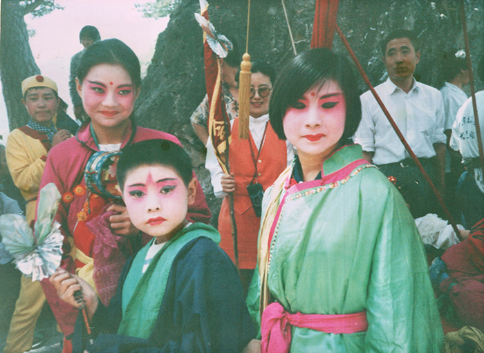 說到跑花會,家住宣武門外誠實胡同的吳寶華師傅上世紀八十年代經(jīng)營了一家字號“勞動同樂”,專門在北京廟會上表演舞獅、耍中幡、踩高蹺、跑旱船、騎驢和大頭娃娃。表演者都是一家人,分工明確,還有人專門負責操持響器、推鼓架、看攤。一天表演兩場,收入頗豐。吳家曾經(jīng)逢年過節(jié)在京西妙峰山立旗舍粥,可見一斑。