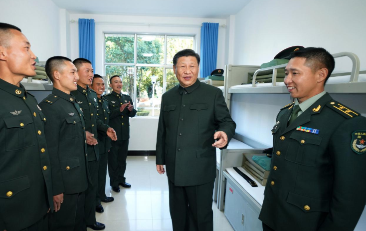 習(xí)近平十分牽掛我國邊防一線的守邊官兵。19日下午6時(shí)許,他來到駐守在我國西南邊陲的某邊防營視察,問住宿,看營衛(wèi)生所,進(jìn)食堂……了解戰(zhàn)士們的工作和生活情況。