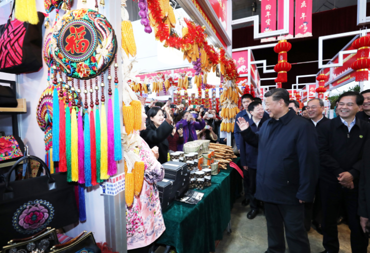 20日下午,習(xí)近平在昆明新春購物博覽會年貨街,了解春節(jié)前市場供應(yīng)情況。