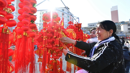 1月21日,在吉林省舒蘭市小城鎮(zhèn)四合村南陽(yáng)屯,小城鎮(zhèn)黨委書(shū)記王閱(右)詢(xún)問(wèn)民宿店主春節(jié)備貨情況。新華社記者 張楠 攝