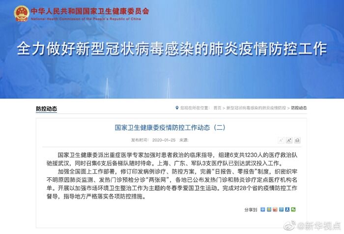 國家衛(wèi)生健康委員會25日發(fā)布疫情防控工作動態(tài),派出重癥醫(yī)學(xué)專家加強(qiáng)對患者救治的臨床指導(dǎo),組建6支共1230人的醫(yī)療救治隊(duì)馳援武漢,同時召集6支后備梯隊(duì)隨時待命。上海、廣東、軍隊(duì)3支醫(yī)療隊(duì)已到達(dá)武漢投入工作。(記者溫競?cè)A、王秉陽)?
