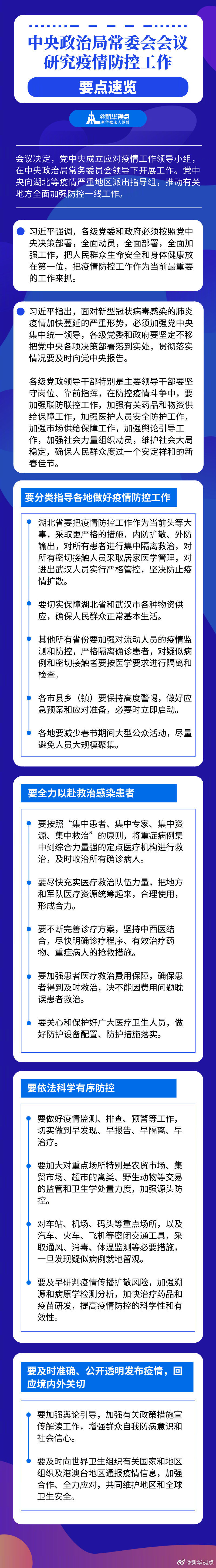 習(xí)近平主持中央政治局常委會(huì)會(huì)議,研究疫情防控工作,黨中央成立應(yīng)對疫情工作領(lǐng)導(dǎo)小組。戳圖??速覽會(huì)議要點(diǎn)
