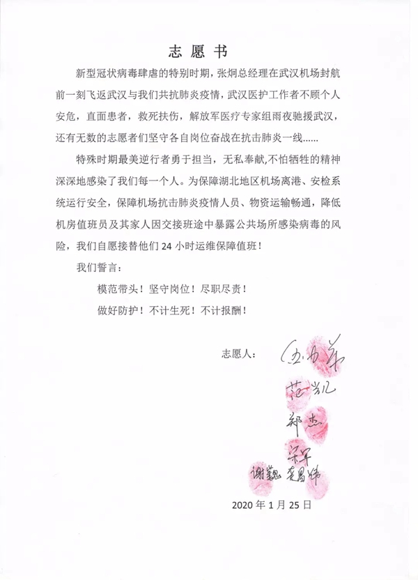 號召發(fā)出后,黨員干部積極響應,金立軍、范凱、鄭杰、梁軍、謝巍、龔昌煒6名技術骨干毅然在志愿書上簽下了自已的名字,并向組織作出莊嚴承諾“模范帶頭,堅守崗位;盡職盡責,做好防護;不計生死,不計報酬”。