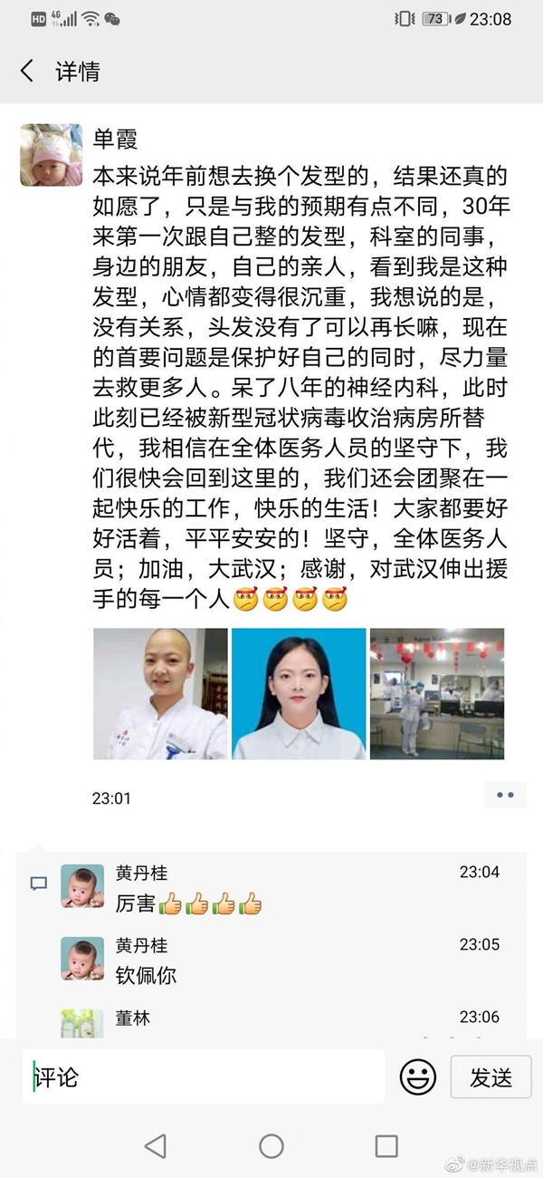 用我及腰長發(fā),換你健康平安:武漢人民醫(yī)院出了個“光頭護士”-新華網(wǎng)